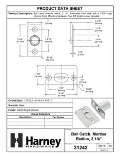 Product Data Specification Sheet Of A Cabinet Ball Catch, Mortise - Chrome Finish - Product Number 31242